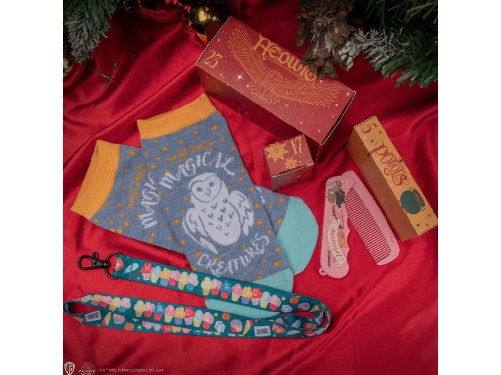 Uvnitř kalendáře najdete také stylové doplňky jako mechanickou tužku, odznaky, klíčenky, poznámkové bloky či lentikulární špendlíky a záložky, které dodají vašemu každodennímu životu trochu magie. Perfektní dárek pro všechny milovníky Harryho Pottera, kteří chtějí odpočítávat Vánoce s jedinečnými překvapeními plnými kouzel a fantazie.