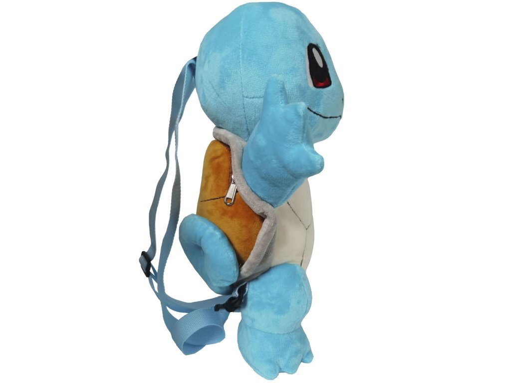 Krásný, plyšový batůžek v podobě plyšového vodního Pokémona Squirtle má zavírání na zip, malý úložný prostor a nastavitelné popruhy. Batůžek a plyšák v jednom jistě potěší každého malého trenéra vodních Pokémonů.
