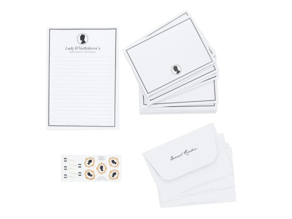 Vraťte se do doby elegantní korespondence s touto dopisní sadou inspirovanou populární knižní a seriálovou ságou Bridgerton. Jemné vzory, romantická atmosféra a decentní detaily dělají z každého dopisu malý společenský zážitek. Sada obsahuje vše potřebné pro psaní osobních zpráv, přání nebo milostných dopisů. Ideální doplněk na pracovní stůl i krásný dárek pro fanoušky Bridgerton.
