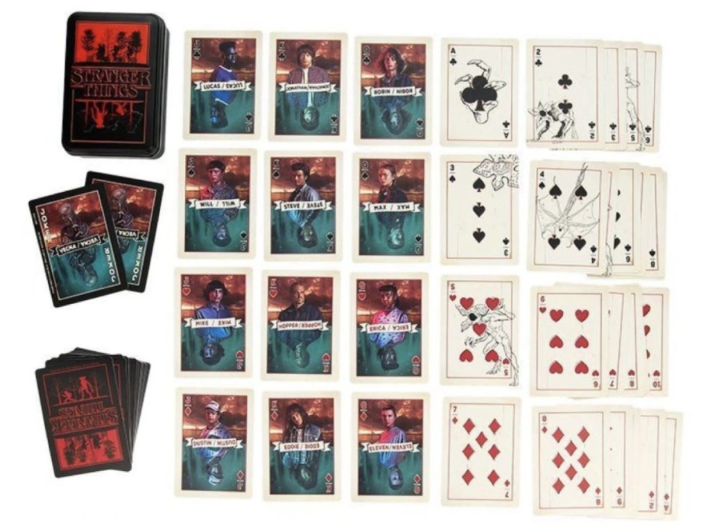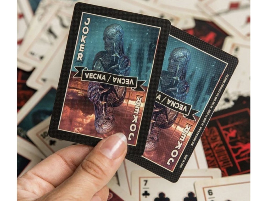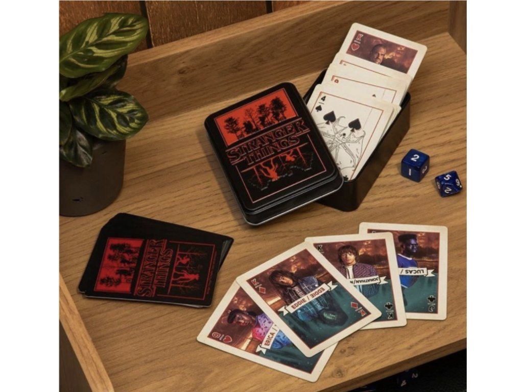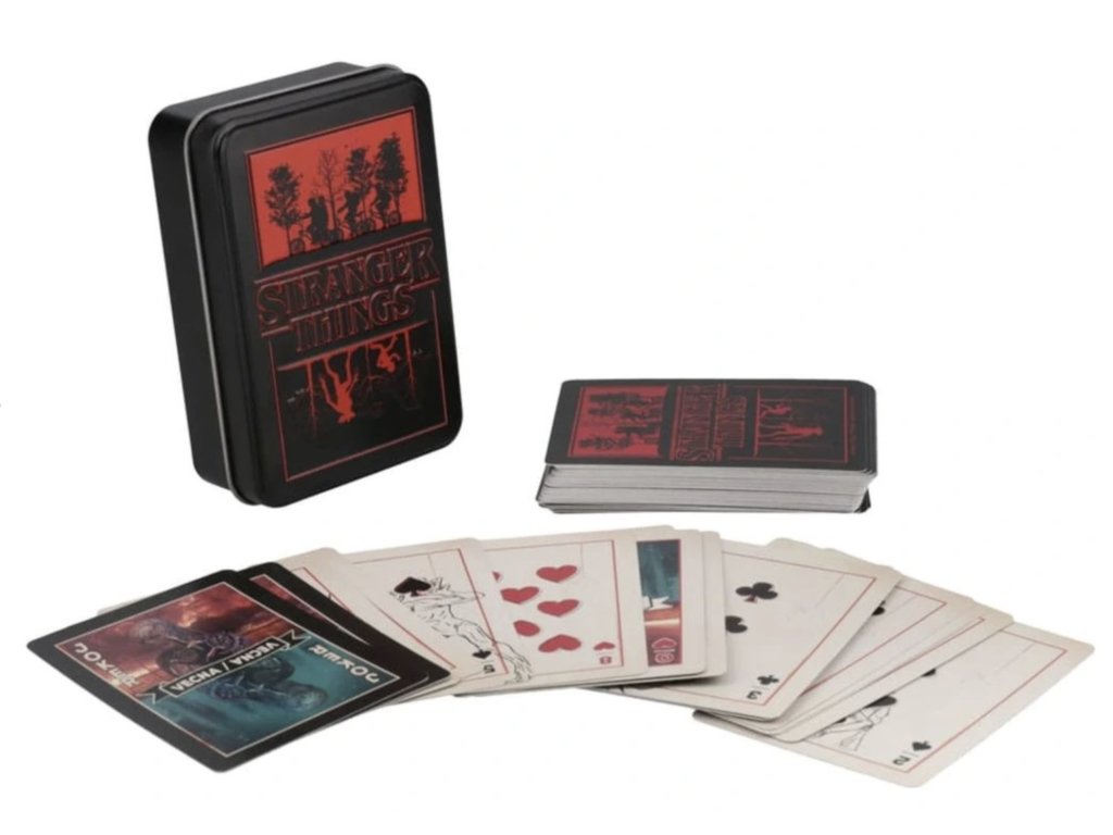 Vraťte se do světa záhad městečka Hawkins s oficiálními hracími kartami Stranger Things. Tato speciální edice přináší klasický balíček 54 karet doplněný o grafiku inspirovanou hlavními postavami a ikonickými motivy seriálu od Netflixu.
