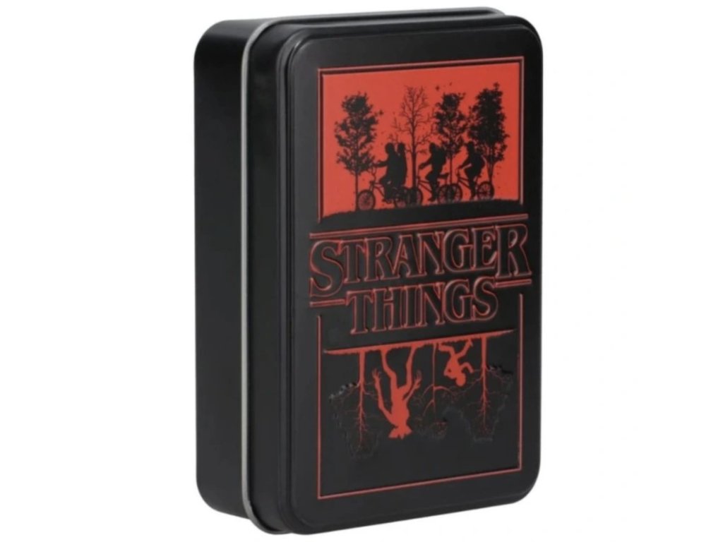 Karty jsou uloženy v praktické kovové krabičce, která je chrání při cestování a zároveň z nich dělá stylový sběratelský kousek. Jsou ideální pro běžné karetní hry, fanouškovské večery i jako originální dárek pro každého milovníka Stranger Things.