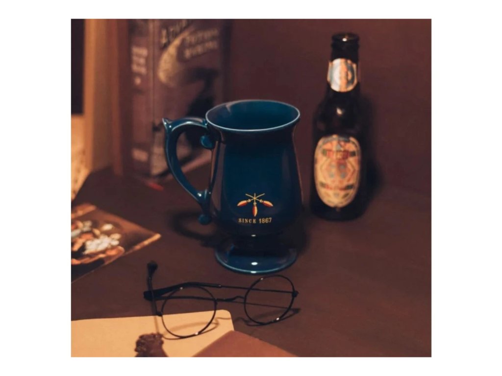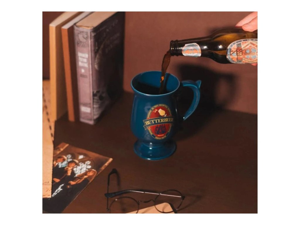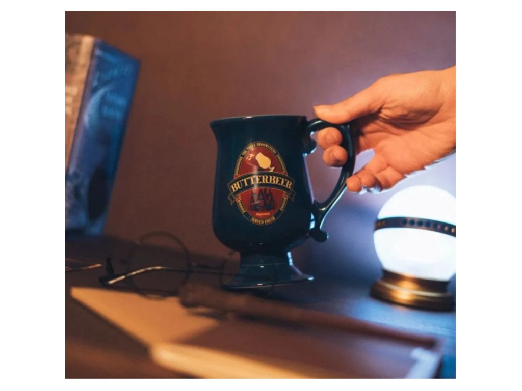 Design korbele odkazuje na legendární máslový ležák – oblíbený nápoj z kouzelnického světa, který si studenti v Prasinkách tak rádi vychutnávali. Modrá barva, zlaté nápisy a silná keramika z něj dělají nejen funkční hrnek, ale i sběratelský kousek.