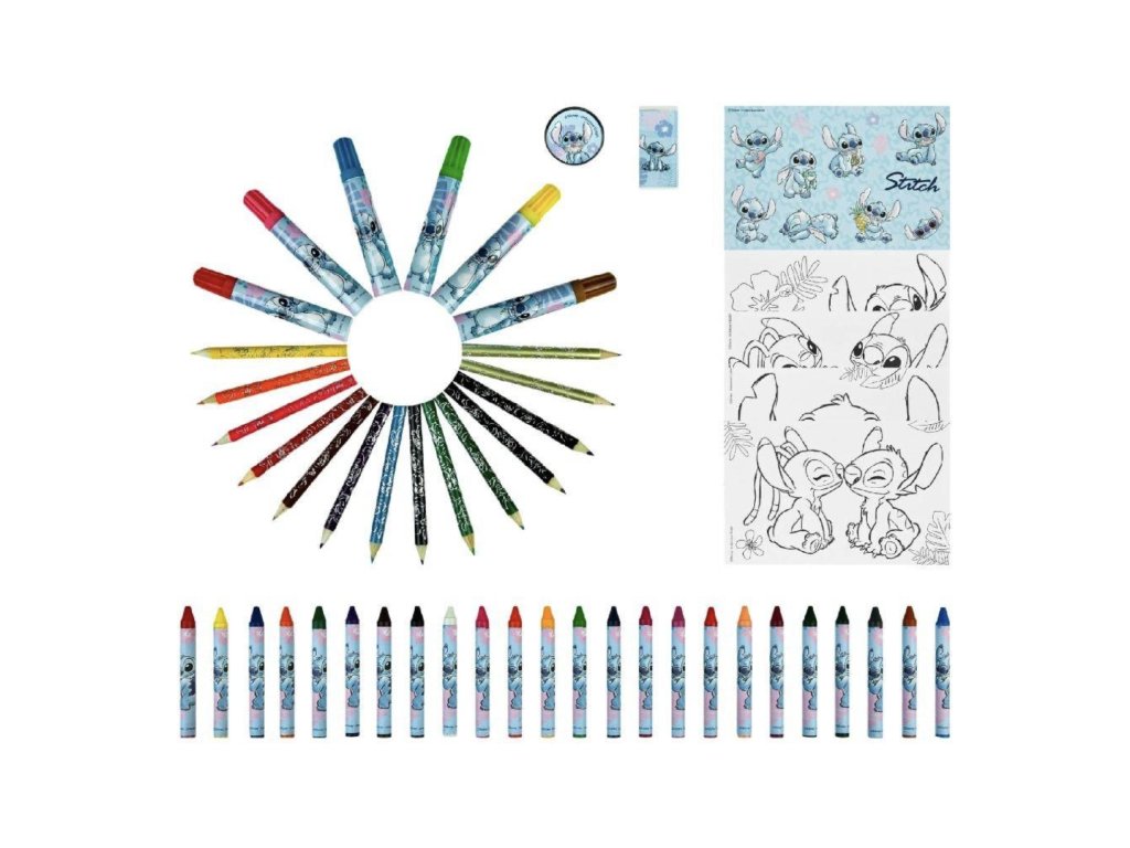 Děti otevírají kufřík plný barev a nástrojů a okamžitě se ponoří do kreativního světa Lilo a Stitch. Každá fixka, pastelka či voskovka přináší radost z tvorby a motivuje k objevování vlastních nápadů. Praktický kufřík udržuje všechny pomůcky pohromadě a usnadňuje přenášení doma i na výlety.