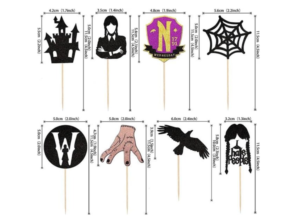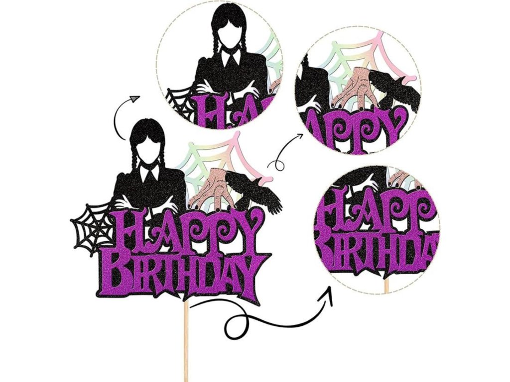 ✔️ Narozeninová dekorace na dort a muffiny s motivem Wednesday