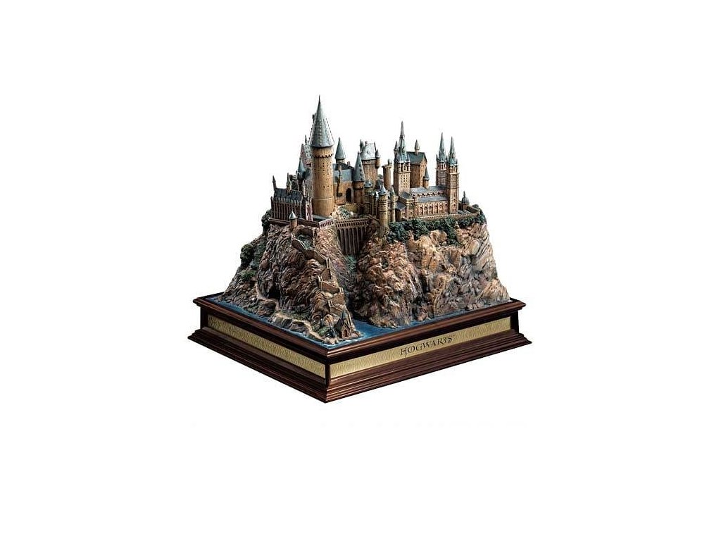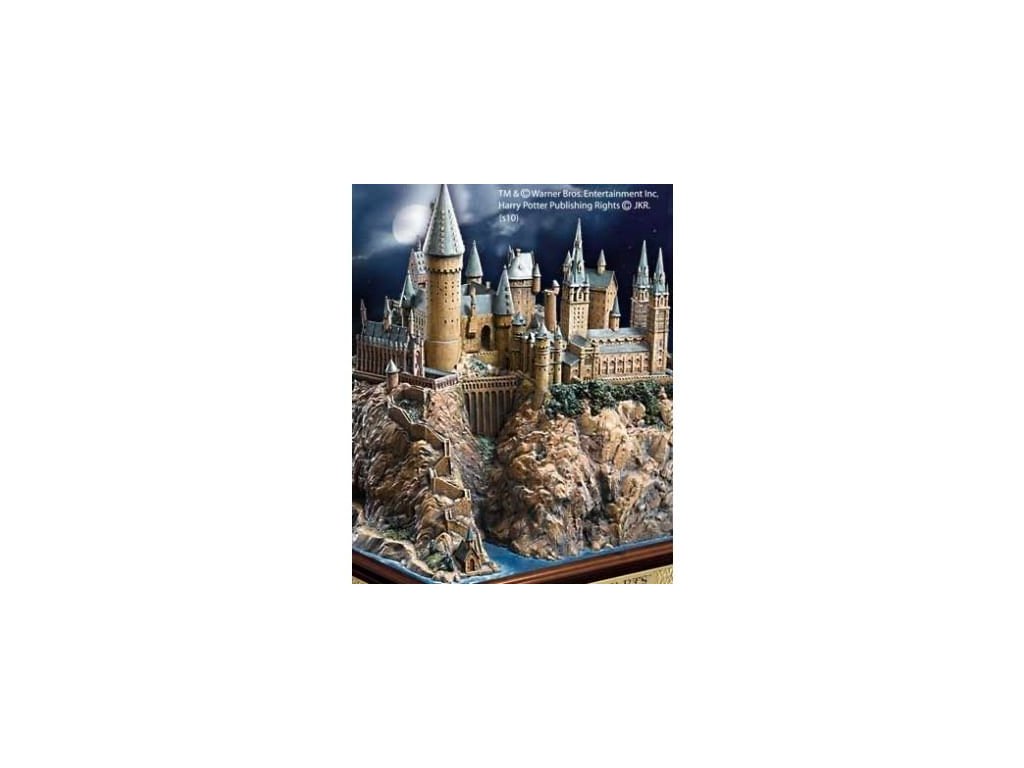 Škola čar a kouzel v Bradavicích se nachází Velké Británii a založili ji čtyři největší kouzelníci svého věku: Godrik Nebelvír, Helga z Mrzimoru, Rowena z Havraspáru a Salazar Zmijozel. Bradavický zámek byl postaven mimo dohled mudlů, aby se zabránilo pronásledování kouzelníků. Škola má, mimo jiné, čtyři koleje, každou pojmenovanou po jednom ze čtyř zakladatelů. Model je ručně malovaný a jeho rozměry jsou 34 x 35 x 32 cm. Součástí je dřevěný podstavec.