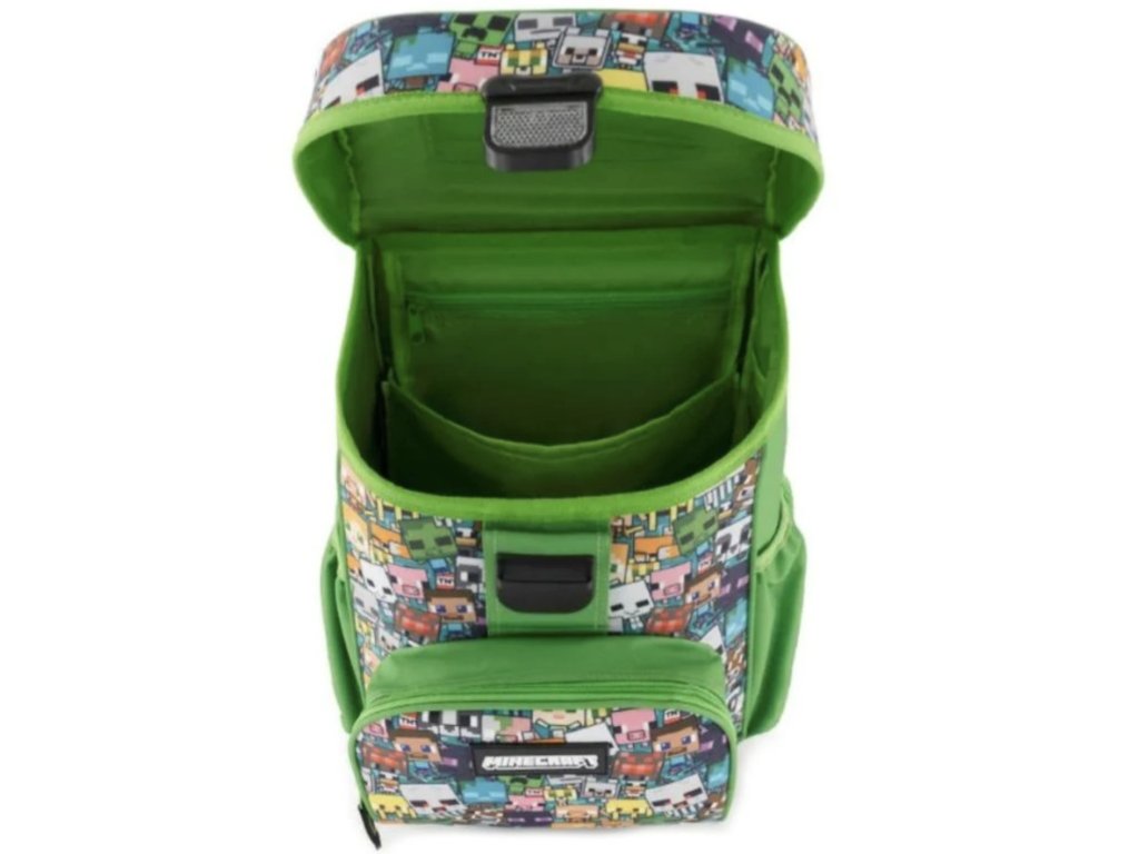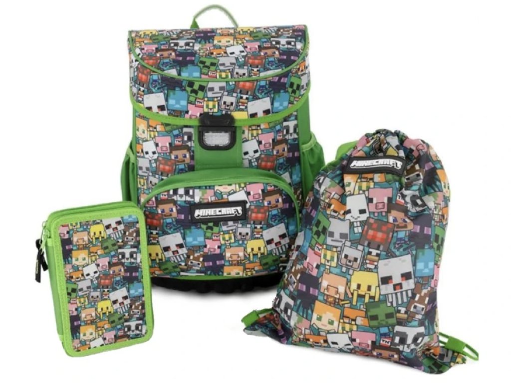 Oficiálně licencovaný školní set s motivem postaviček z populární hry Minecraft potěší každého fanouška. Praktická sada obsahuje ergonomický batoh s polstrovanými popruhy a pevným dnem, dvoupatrový penál a sportovní vak na tělocvik či přezůvky. Barevný design s herními motivy zaujme na první pohled a udělá z každého školního dne dobrodružství.