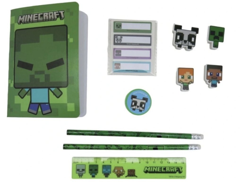 Oficiálně licencovaný školní set Minecraft Icons je praktická sada, která usnadní přípravu do školy a zároveň potěší děti jejich oblíbeným motivem. V průhledné taštičce najdete sešit, tužky, pravítko, gumy, ořezávátko i lepicí papírky – vše v jednotném designu, který zaujme na první pohled. Díky kompaktním rozměrům je set ideální na cesty, do školy i na domácí tvoření. Spojuje funkčnost, kvalitu a radost z populární hry, kterou děti znají a milují.